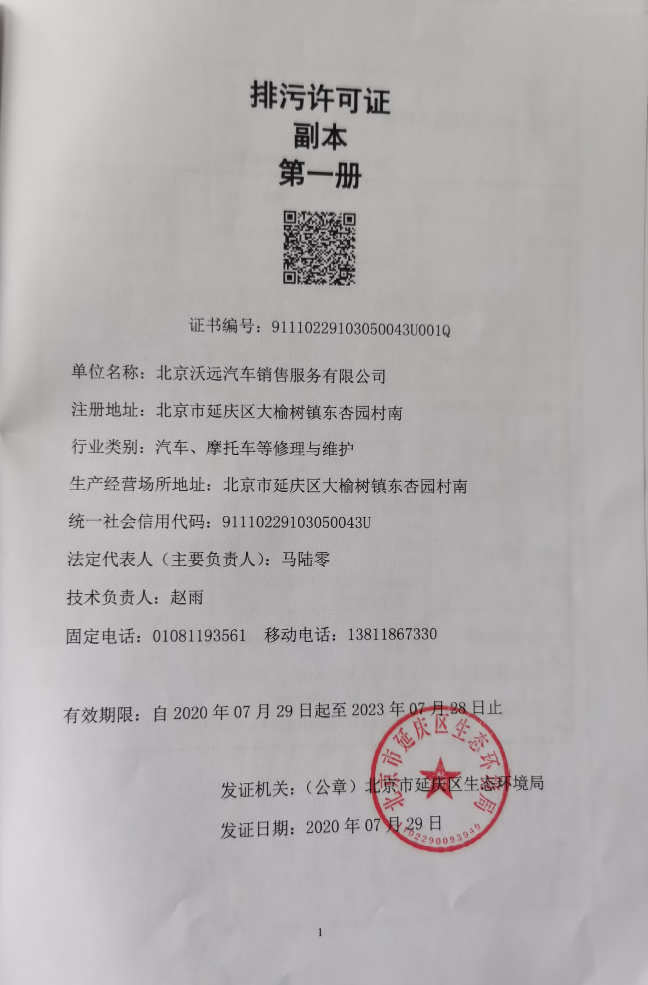 排污许可证基本信息